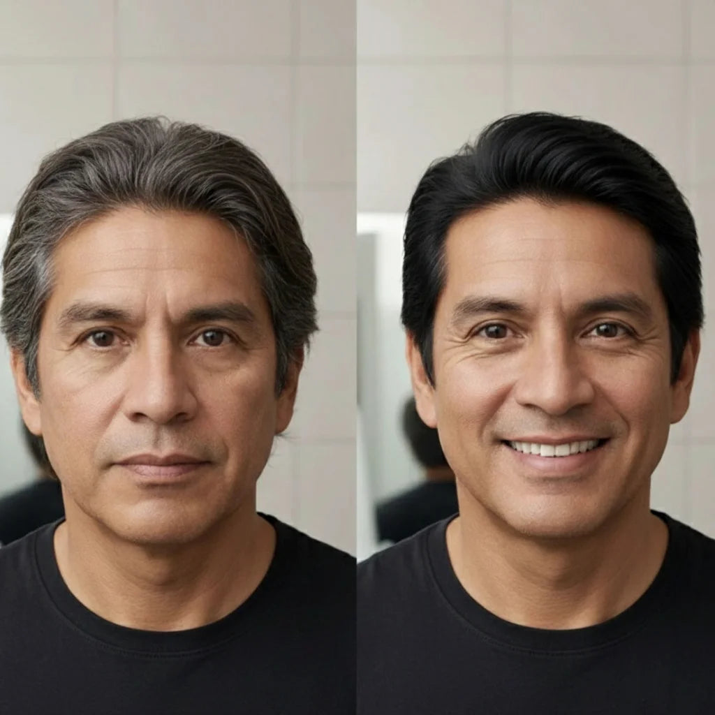 ¡Al instante! verás tus canas desaparecer en minutos, obteniendo un color negro intenso y uniforme que te hará lucir más joven y seguro, todo en la comodidad de tu ducha.